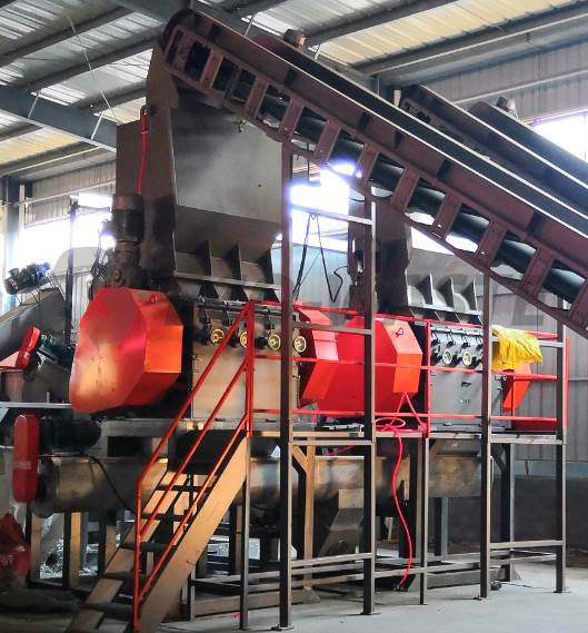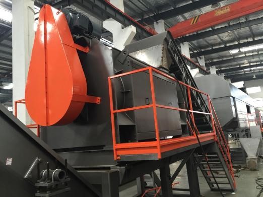 Предварительная мойка: ее функция понятна из названия, в агрегате проиходит удаление грязи и примесей из материала для безопасной и эффективной работы последующих агрегатов. С помощью двойного шнека материал подается далее.