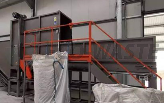 Разрыватель кип - тюки (кипы) ПЭТ отходов, предварительно освобожденные от обвязки, помещаются автопогрузчиком на ленточный конвейер, в разрыватель. Скорость распаковки регулируется с помоцью частотного преобразователя скорости работы.