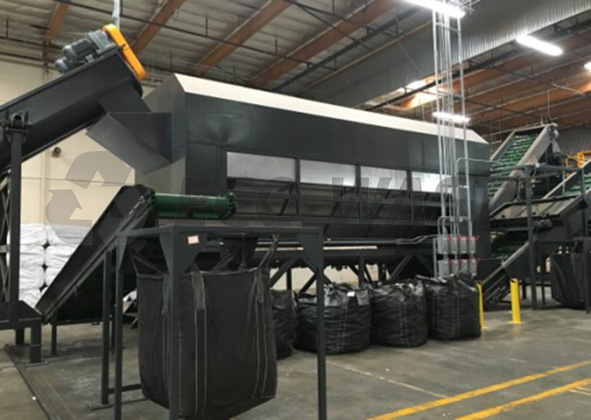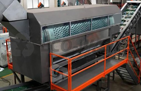 Отделитель этикеток и клея, удалитель этикеток: агрегаты используются для удаления этикетки с отходов пластиковой тары. Решение этой задач позволяет практически полностью исключить наличие этикетки в конечном продукте (флексе). Из-за разницы в весе бутылок и этикеток этикетки отделяются потоком воздуха, создаваемого вентилятором для выдува этикеток, установленным на разгрузочном конце барабана этикеткоотделителя, подаются на сетку и собираются тележкой или выдуваются в упаковочную машину; в то время как бутылки выводятся с другого конца и доставляются на следующий процесс двухшнековым конвейером.