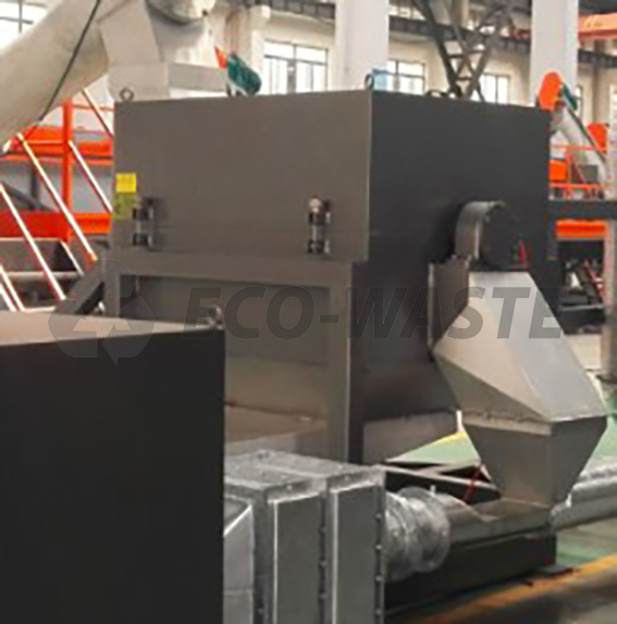 Водоотделитель (дегидратор) - удаление воды и высушивание флексы до значения влажности в 1%. Проходя через камеру с центробежным сысокоскоростным обдувом, флекса отлично высушивается, лишняя жидкость удаляется черз сетку.