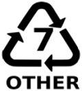 7О (Other) – знак утилизации, свидетельствующий о принципиальной невозможности переработки данного полимеросодержащего продукта (чаще это поликарбонат). Такие отходы хранятся на полигонах ТБО. |